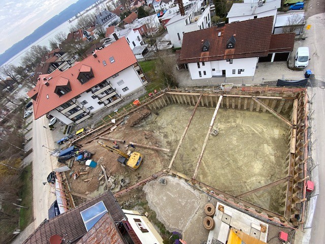 komplette Baugrubenumschließung mit Wasser-